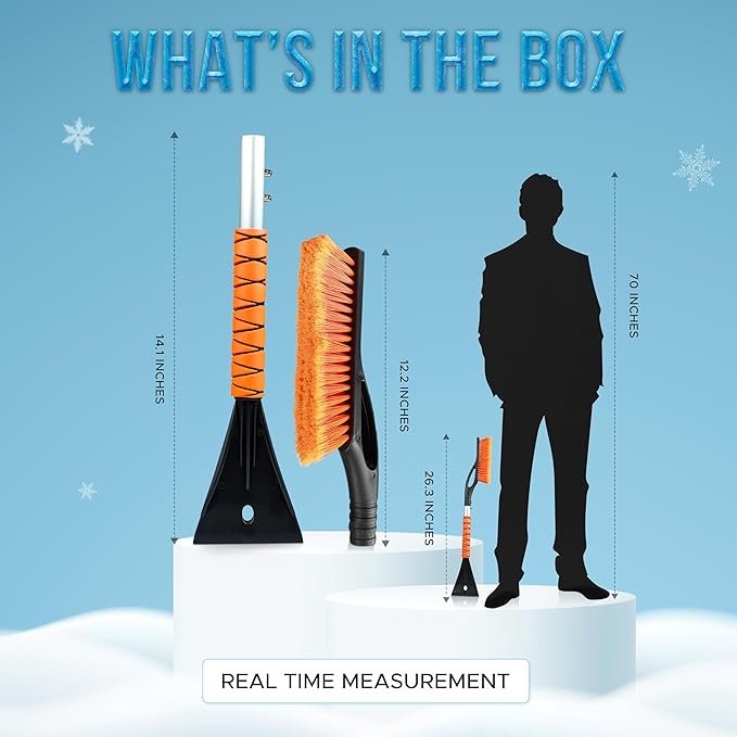 - Durable Yet Lightweight Build: Made with a premium aluminum shaft, ABS plastic, and soft PVC bristles, this ice scraper for car windshield is ultra-lightweight, portable, and travel-friendly, yet strong enough to handle heavy snow and ice. A must-have car winter brush and snow car scraper for all-weather use.