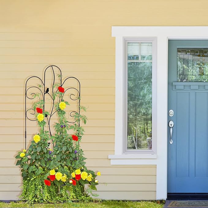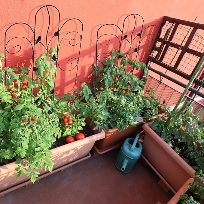 - MULTI PURPOSE METAL TRELLIS: This garden trellis for vegetables is suitable for clematis, climbing roses, vines, morning glories, beans, sweet peas, tomatoes, other vegetables, and more. You can also use bean trellis to form a sturdy screen or corner with more of it and provide support for climbing plants trellis while adding height and variety to your lovely garden