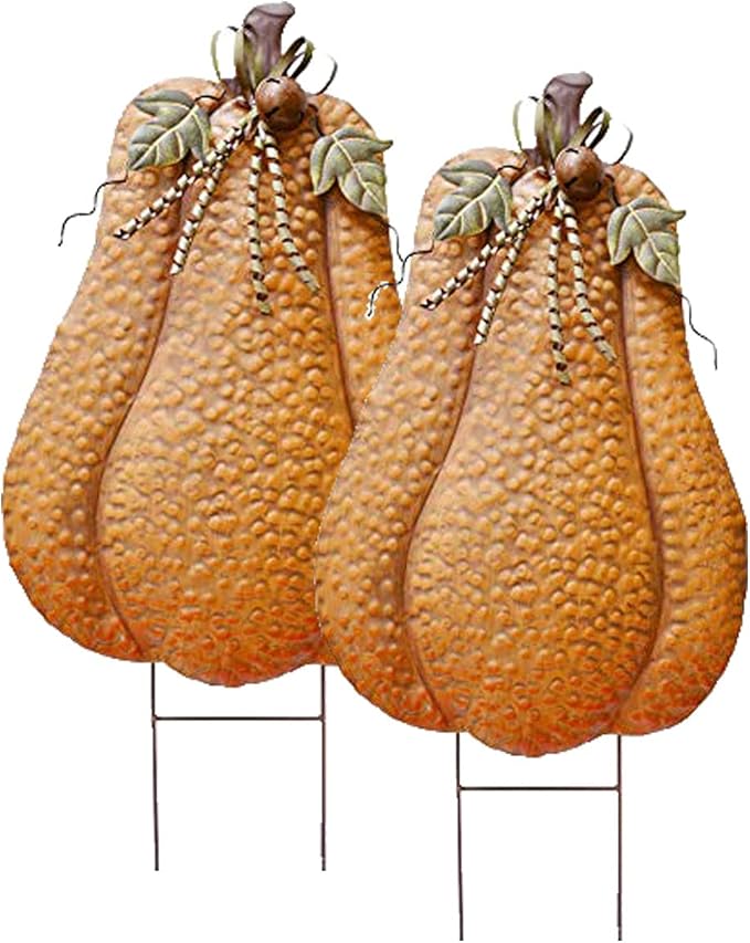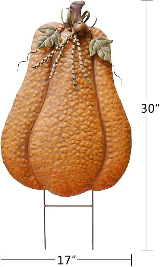 - Fall Pumpkin Lawn Ornament: Metal pumpkin yard sign features one dimensional metal pumpkin, leaves and 3D vines. It can be used for fall yard decor from September through Thanksgiving.