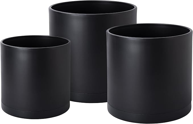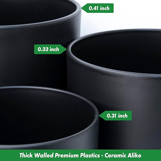 D'vine Dev 10 Inch 12 Inch 14 Inch, Set of 3 Plastic Planter Pots for Plants with Drainage Hole and Seamless Saucers, Black Color, XX-Large, 74-V-B-6