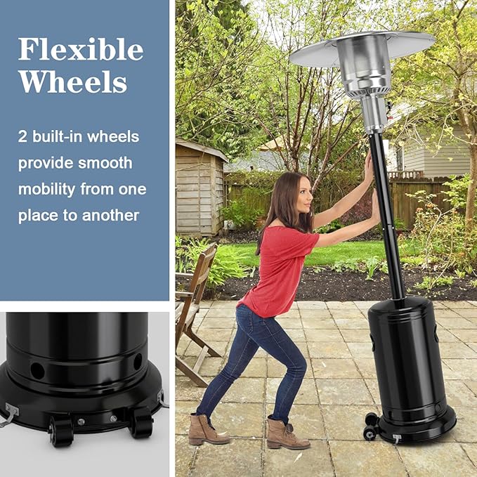 - Easy to Move & Assemble: The propane heater features 2 flexible built-in wheels, allowing you to move the heater effortlessly from one place to another. And 2 handles on both sides help you to install the 20lbs liquid propane gas tank (not included).