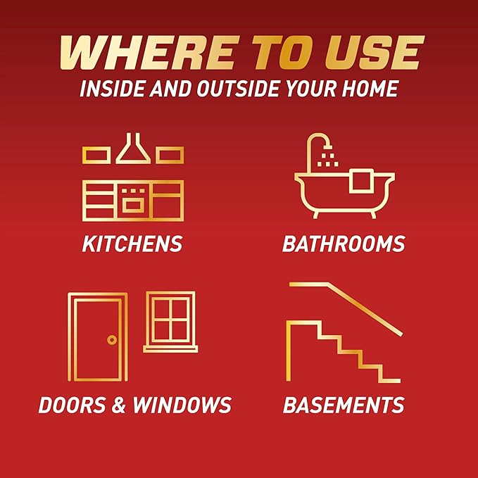 - Use indoors in kitchens, bathrooms, doors, windows and basements, and outdoors around the perimeter of foundations, patios, decks, garages