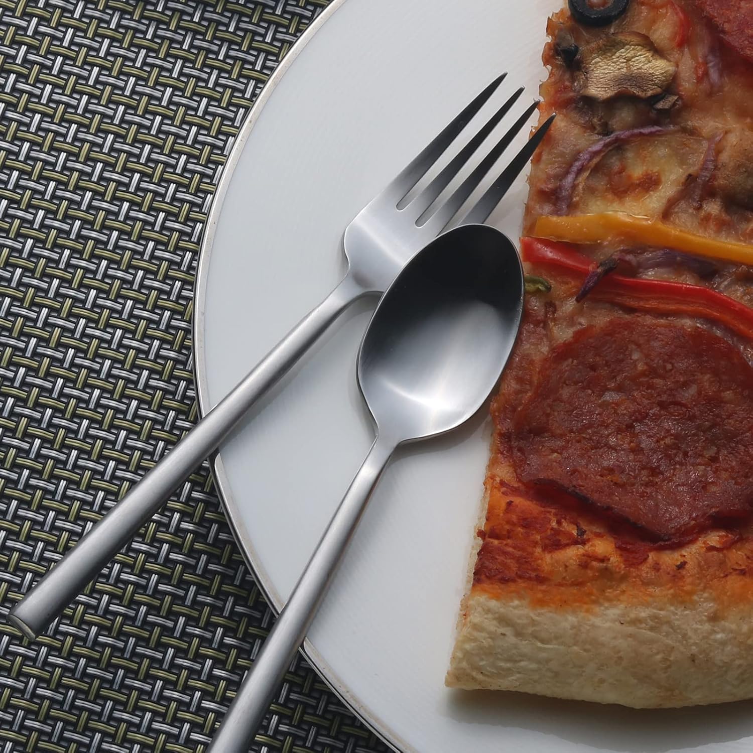 - Modern & Stylish Design: Embrace modern elegance with our silverware set. Its classic round handle shape with satin finish provides a natural and elegant design, and the smooth, silk surface without grain makes it easy to clean. It's a perfect match for those seeking a modern silverware set, a rustic silverware set, or even a unique flatware set