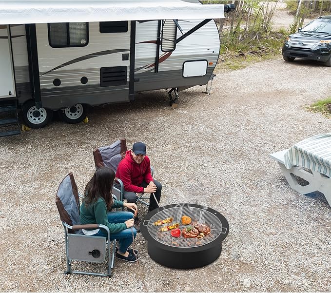 - 【Large Wood Capacity】- 42 inches outside x 36 inches inside diameter x 10" Height, the fire pit liner bigger area is more suitable for fire grows; Features specially designed hole for grilling with our grill grate(sold seperately)on the ground.