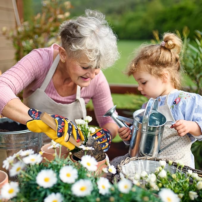 Bamllum Leather Gardening Gloves for Women - Working Gloves for Weeding, Digging, Planting, Raking and Pruning