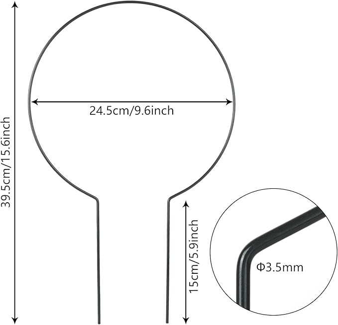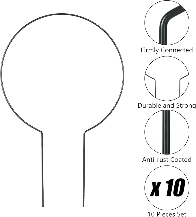 - Size: The size of each trellis is 15.6” x 9.6”, 3.5 mm in diameter, strong enough to apply on different climbing plants. Package include 10 pieces circle trellis, which is adequate enough for supporting most climbing plants in your garden