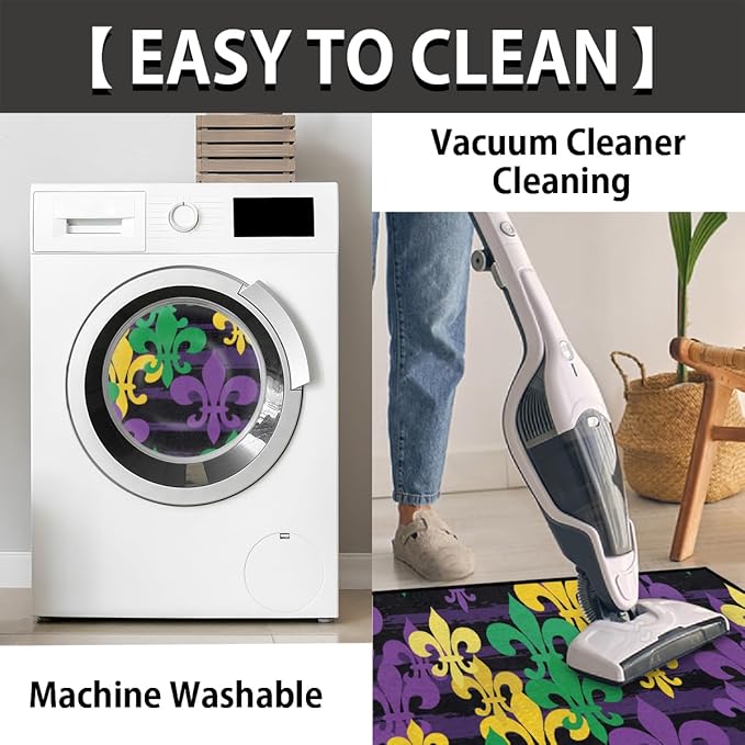- EASY TO CLEAN: Cleaning our Mardi Gras half round door mat is a breeze. It's machine washable, allowing for convenient cleaning whenever needed. Additionally, you can easily maintain its cleanliness by vacuuming, sweeping, or shaking it outdoors to remove loose dirt and debris. For a deeper clean, simply wipe it with a damp cloth and mild soap, or rinse it with a garden hose. Enjoy a fresh and vibrant mat throughout the Mardi Gras season and beyond.
