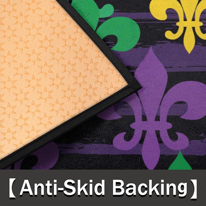- DURABLE & LONG-LASTING: Specifically designed for small entryways or doorsteps, our Mardi Gras half round door mat measures 36x24". It boasts a non-slip wear-resistant silica gel backing and a durable polyester fiber surface, ensuring resilience against heavy foot traffic. Perfect for homes with pets or kids, its high-quality construction guarantees long-lasting performance, even in high-traffic areas.