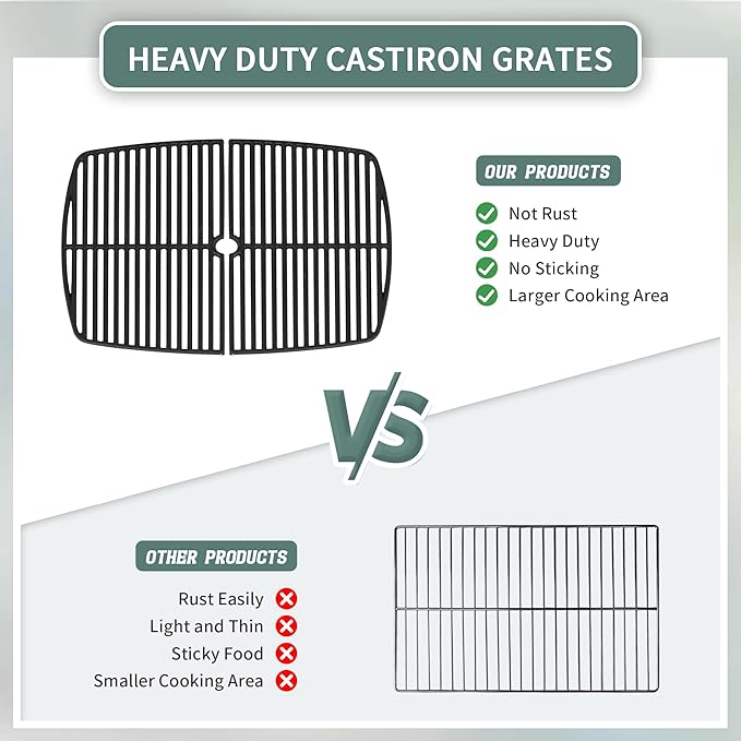 - ❤COOKING SYSTEM - This propane gas grill Includes powerful U-shaped stainless steel burners, total output 11500 BTU, two cast iron grates are perfect to cook meats, seafood, or veggies on the 266 sq in cooking space, hose and regulator included