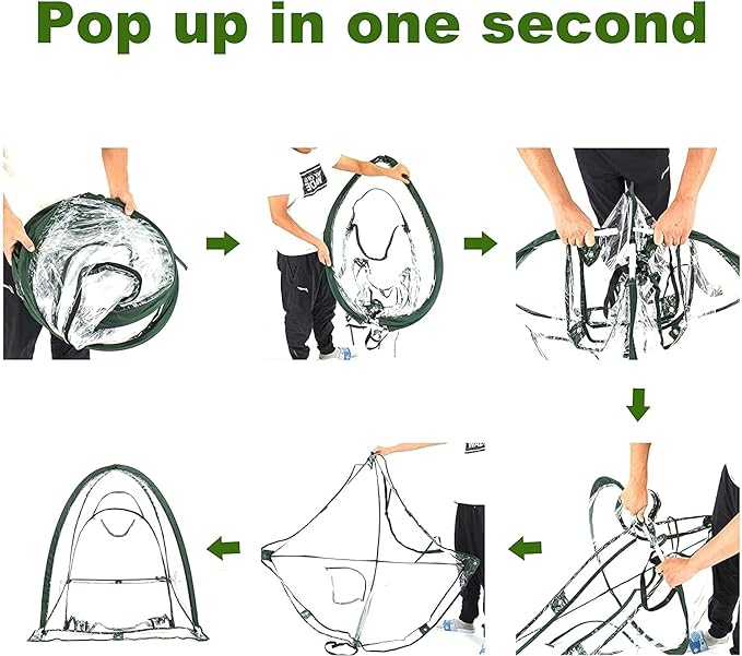 - POP UP & PORTABLE : Our greenhouse house cover can be quickly built in a short time,and it can be fixed with the ground nail after deployment, easy to operate. folding size: 41x41x4cm and the greenhouse can be folded easily when not in use, convenient for storage, no space and easy to carry.