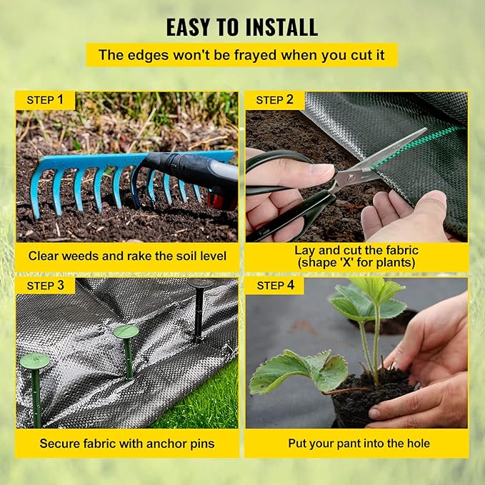 - Easy Installation: Our weed block fabric is effortless to cut and install. It is convenient to DIY the cloth size and shape to meet your different needs. The garden cloth weed barrier also features green stripes for easy plant alignment. (Installation tools are not included.)