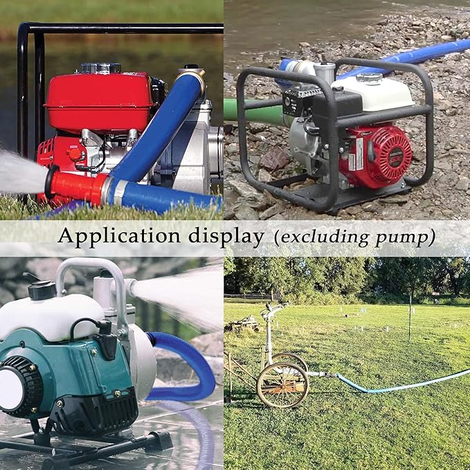 - No leak or burst. Pump discharge hose is molded by extruder and reinforced with polyester yarn. The pin-lug fittings are fixed by stainless steel clamps, and there is no leakage or burst within the 90 psi working pressure, sturdy and durable.