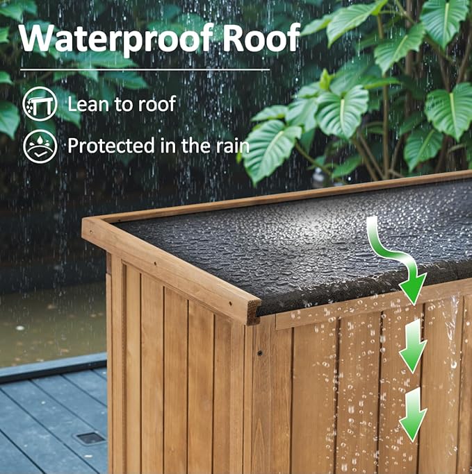 - Waterproof Roof: The sloping asphalt roof is not only waterproof but also avoids water accumulation, prolonging the life of the patio cabinet storage waterproof.
