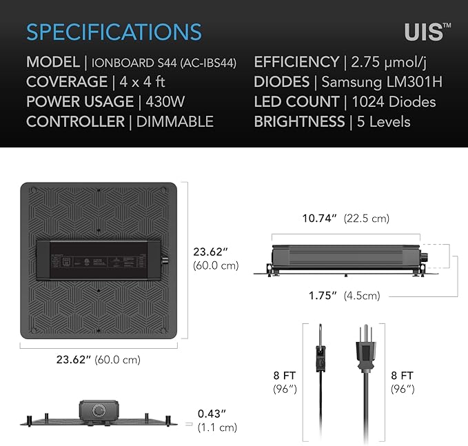 - Utilizes full-spectrum Samsung LM301H LEDs to achieve powerful lighting optimized for all plant stages.