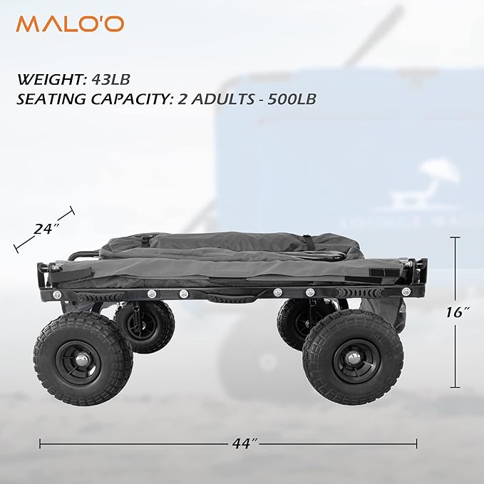 - Versatile and Sturdy Design: The Lounge Wagon combines durability with comfort, featuring a robust steel frame that supports up to 500 lbs. Its spacious dimensions (44" x 24" x 16" when collapsed) and comfortable seating make it perfect for outdoor adventures, family outings, or relaxing at the park. Enjoy the convenience of easy transport and sturdy support for up to two adults.