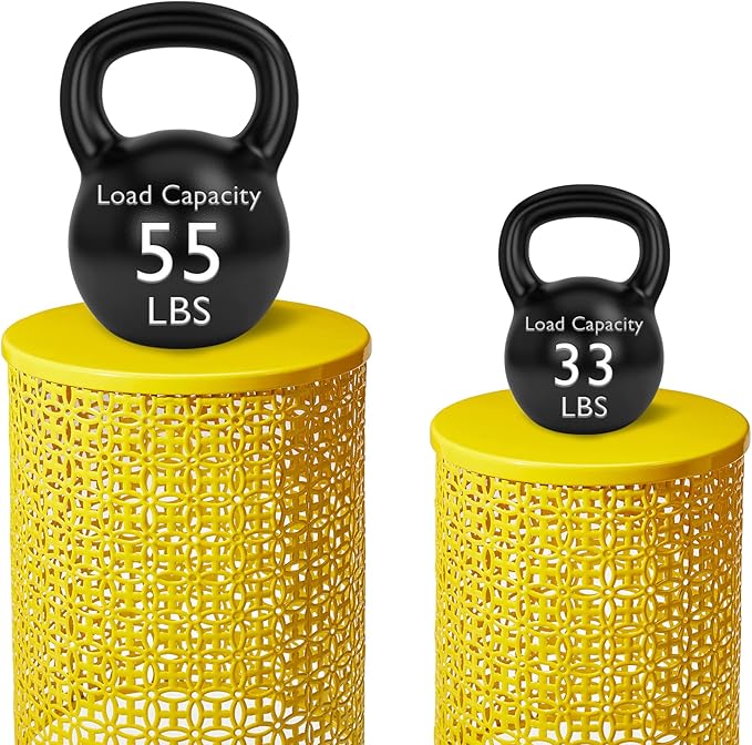 - Sturdy : The set of 2 decorative garden stools are made of high quality metal, sturdy and rustproof for long-time use. Size: L: 14.5"D×19.25"H, S: 12.5"D×16.5"H. Weight capacity: 55 lb.