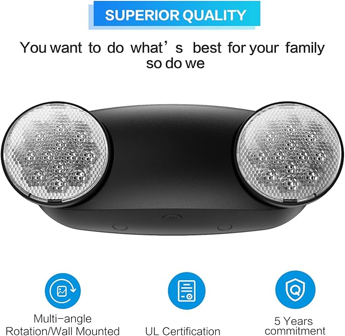 - ✔[ Ratings]: Black emergency lighting for UL damp location listed standard at 50-104 degrees F, meets or exceeds all applicable requirements for Life Safety Code and state specific requirements.