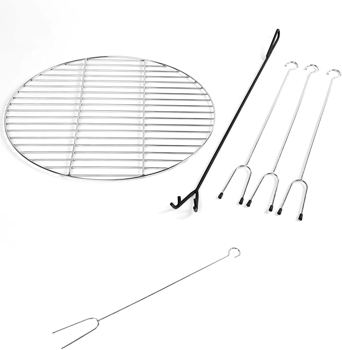 - ACCESSORIES INCLUDED: This fire pit includes 4 high-quality roasting sticks, a spark screen guard, and a lift tool that doubles as a fire poker. The roasting sticks are perfect for marshmallows and hot dogs, while the spark screen ensures safety by protecting against unwanted coals.