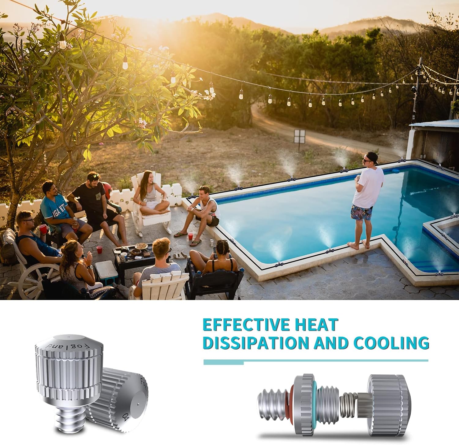 - [Newly upgraded misting effect]: Fogland newly upgraded mist nozzle can produce water mist with larger flow rate and coverage distance. Atomized particles are fuller and the cooling capacity is strengthened, which can reduce the ambient temperature by 10°C or 50°F.