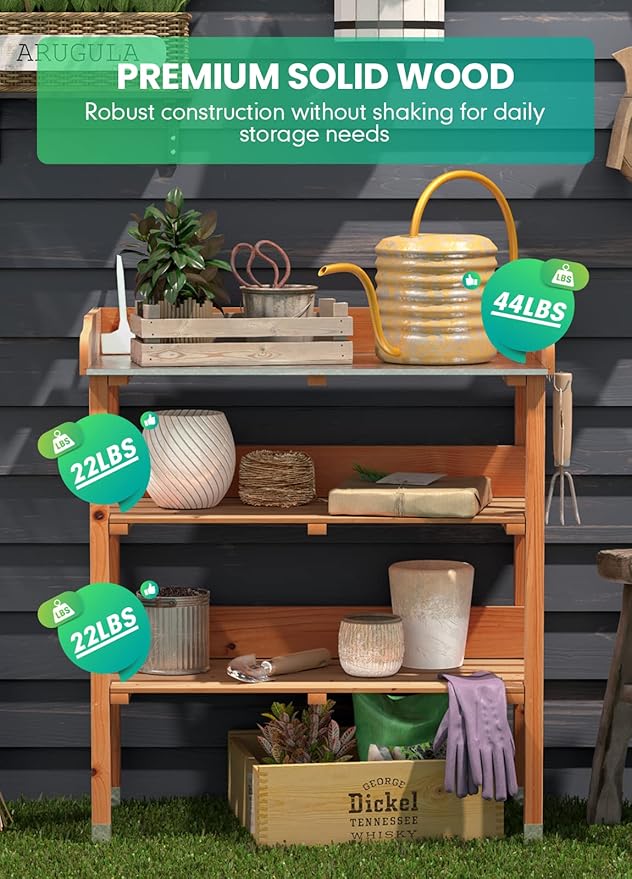 - 🌺Sturdy Construction - ARNOT's outdoor potting bench are made from a weather-resistant wood species, fir, which naturally resists bending and damage. Wood potting tables for outdoors can also be specially maintained to help keep them in top condition.