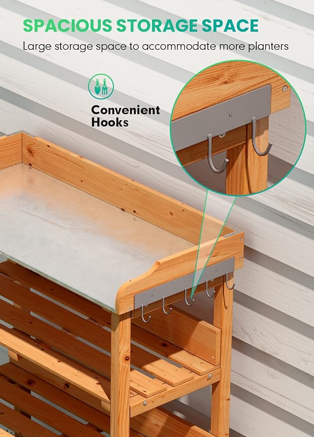 - 🌺Humanized Design - The galvanized top is specifically designed for any garden work. The metal countertop remains rust-proof even in the rain outdoors, with an easier-to-clean surface and overall corrosion resistance, making it easier for the home gardener.
