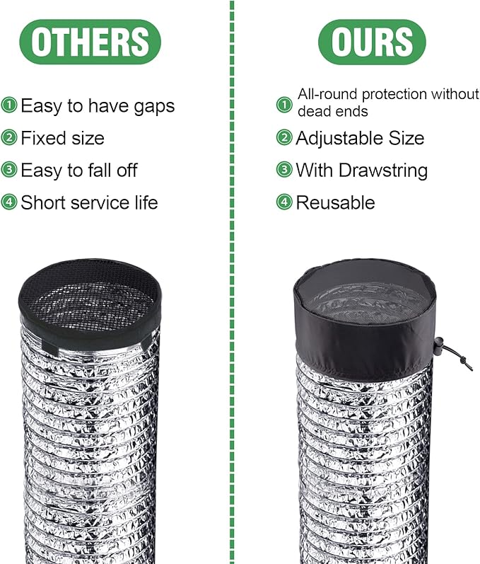 - Premium Material: Our air duct filter cover adopts Oxford, waterproof and breathable, durable, so it won't be damaged in a humid environment. The fine mesh in the middle uses high-quality plastic, safe and odorless. The drawstring is sturdy nylon material.