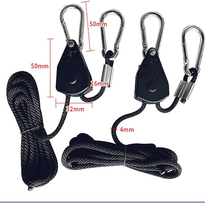 - HANGER★50- Pair of 1/8" heavy duty rope hangers will support everything from the heaviest to the most delicate pieces of your grow room equipment, 150-pounds per pair