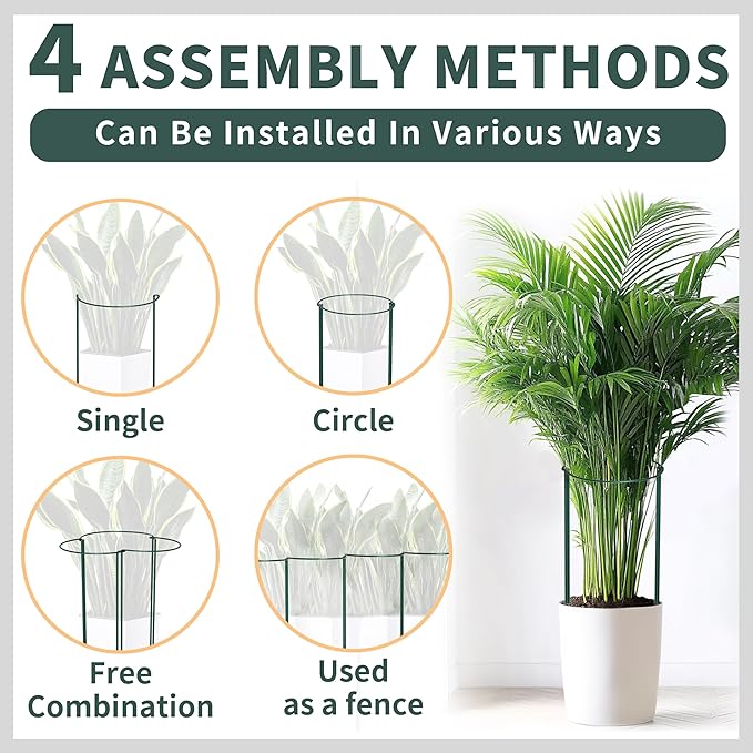 - Garden supports for plants well props up plants to grow upright and healthily, effectively prevent vine from spreading out, protect plants against strong wind, heavy rain or their own heavy blooms. Just push them into the ground, used as a single half or interlinked to form rows, circles. Also detachable, and can be overlapped, save space and easy to store.