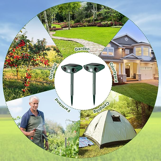 - Design Concept: the ultrasonic animal repellers are mainly designed to repel a variety of animals away from your garden, such as cats and dogs, in this way, you can better protect your lawn and flower beds, keep them in good condition. Note:Different animals have varying tolerance for ultrasound, and when animals are in a state of hunger, the impact of ultrasound on them is limited