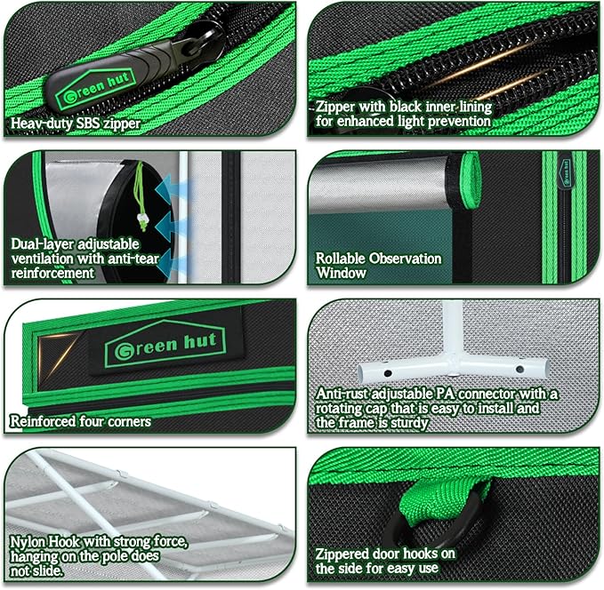 - LIGHT PROOF --- The large heavy duty Zippers & 1.5" ribbon protect the tent from light leaking and ensure durability and long-lasting use. Let you control the climate and lighting so you can grow any plant in any place safely and easily