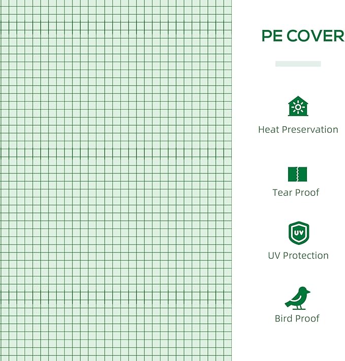 - 130 gsm PE Cover: Our two-layer PE cover features a reinforcement grid through the middle to prevent tearing. It maintains high humidity levels for growing tropical plants and protects plants from UV scorching while allowing 85% of nourishing sunlight to pass through uninterrupted.