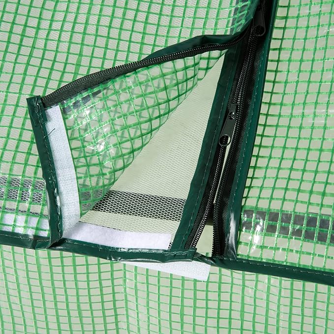 - Two Layer Windows: This green house features two double layers mesh windows for better air circulation inside while protecting plants from outside. The zippered roll-up design is more convenient.
