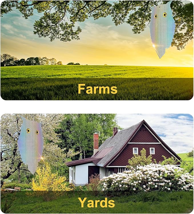 - Reflective bird proof: Using the characteristics of pigeons and other birds that are afraid of sudden strong light, this product can reflect sunlight at different angles to frighten and drive birds such as pigeons away. Contains 2 owl decoys.