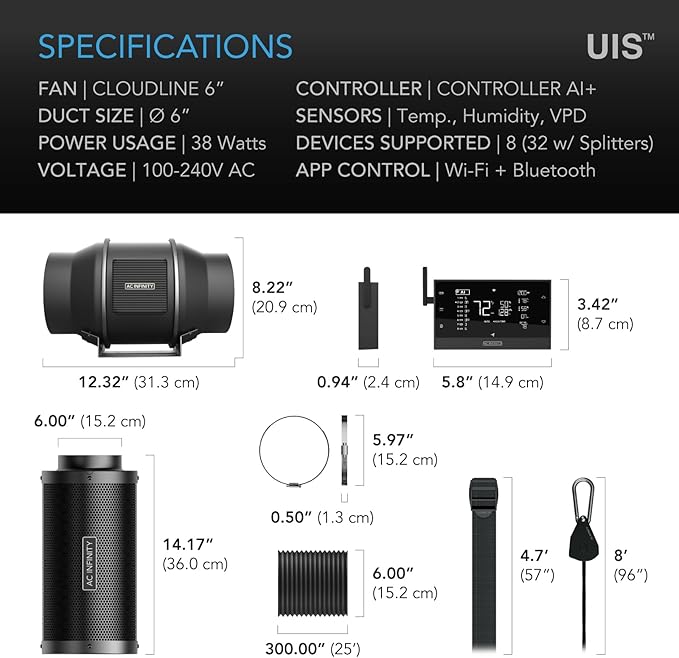 - Features an AI-powered controller that analyzes climate patterns and anticipates spikes to program the inline fan dynamically.