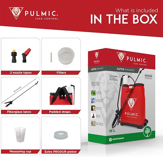 - THE PULMIC RAPTOR 16 ADVANCE: is the professional's best ally. High-quality materials, ease of use, lightness and no need for tools to disassemble. Best Sprayer in Lawn and Garden.
