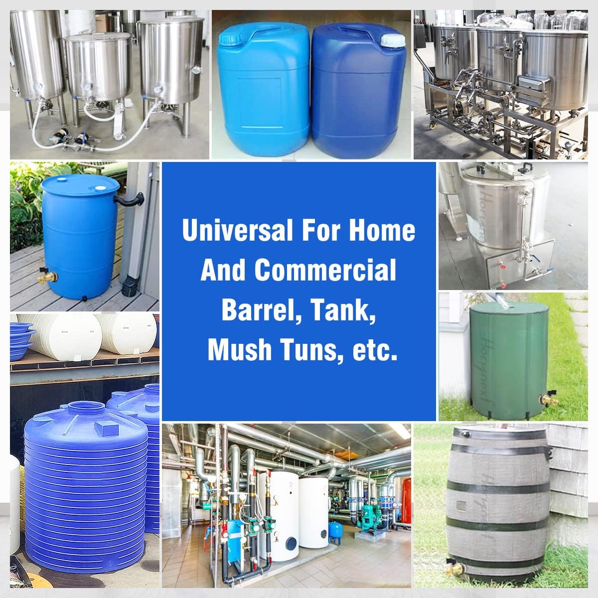 - INSTALL:Drill a 1 inch hole on 25/50/55/5 gallon bucket and the water spigot for rain barrel kit adapt to 1-1/4 inch hole and 1/20~3/4 inch thick wall, universal design for open lid barrels or containers, installing tools will be packed in your package