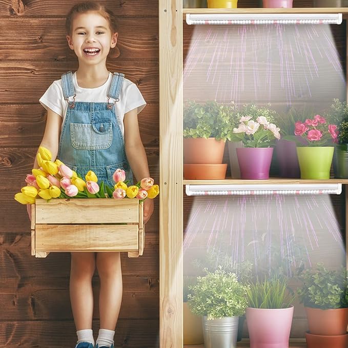 - 🪴5000K FULL SPECTRUM LIGHTS - Each hanging grow light bar is equipped with super bright 45pcs white light beads + 6pcs red light beads. 5000K white light is suitable for all sort of indoor plants, red light contributes to germination, flowering and result.