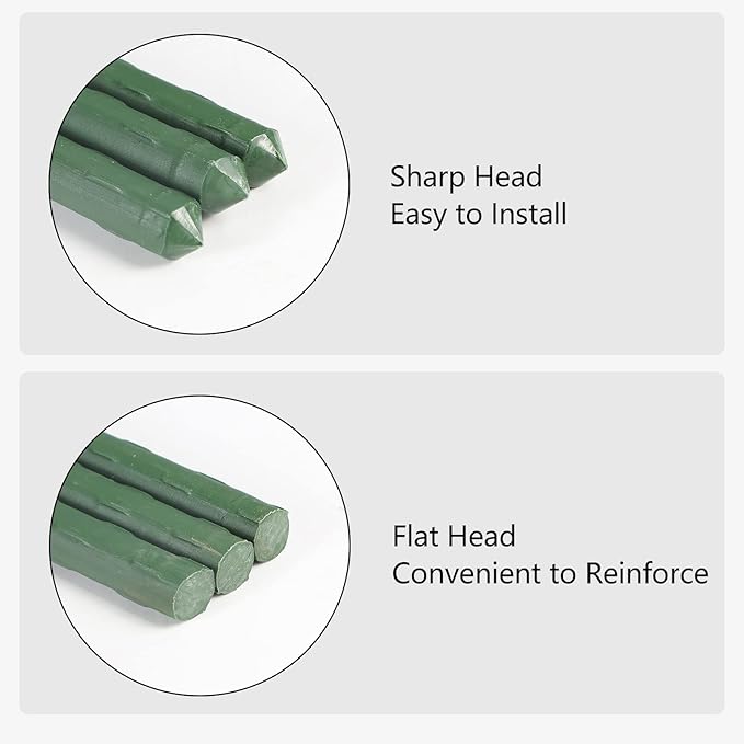 - 【Sturdy and Durable】Made of sturdy hollow steel, coated with rustproof plastic, allow the garden stakes for plants to have a longer life cycle than bamboo stakes and wood stakes, more handy and flexible than rebar and, can be reused.