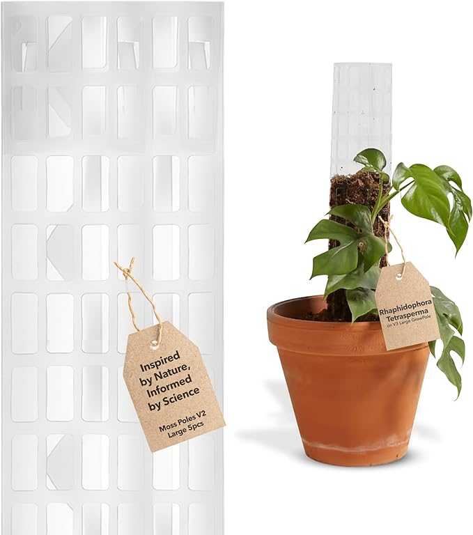 - DURABLE AND LONG-LASTING MATERIAL: Made from high-quality PET and thick plastic, this moss pole plastic is built to last. Whether you're using it as a monstera moss pole or a plant moss pole, it provides reliable plant support. Our stackable moss pole design is perfect for customisable heights, and the clear moss pole plastic maintains a minimalist greenhouse look. Ideal for supporting moss poles for monstera, philodendrons, and other climbing plants, this grow pole ensures healthier growth.