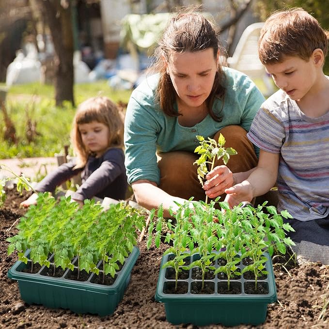 - PERFECT FOR SEEDS GROWTH:Each tray “pack” features a solid base, a 12-cell insert, and a clear plastic humidity dome. The cells taper from wider on top to smaller at the bottom to make seedling removal easier. The clear plastic trays of this seed starter make it easier to observe your plants without having to pull seedlings from the tray. Drainage holes at the bottom of seedling starter trays also help maintain a better soil moisture level, so more seeds germinate.