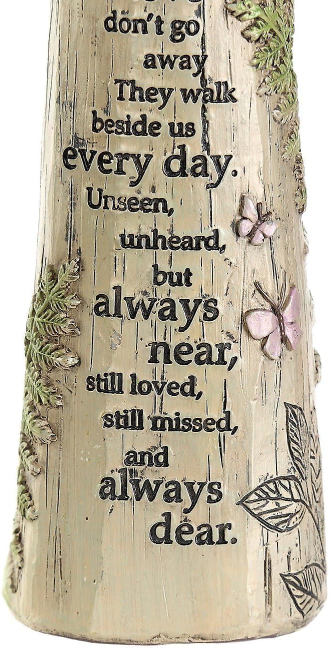 - Resin Decor Statue's Dimensions: 4.25"W x 2"D x 10"H. perfect size for many scenes. Features beautiful, crafted details, the angel garden figurine is a very appealing statue, adding a lot of characters to your garden, flower bed and plant stand