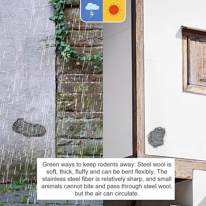 - Metal Fibers: The mouse hole filler is made of thousands of metal fibers, our steel wool mice control material is a multi-fiber wool blend that's soft, thick, fluffy, and flexible. The steel wool pads are sharp enough to prevent small animals from biting through, while the wire mesh for mice control still allow air to circulate.