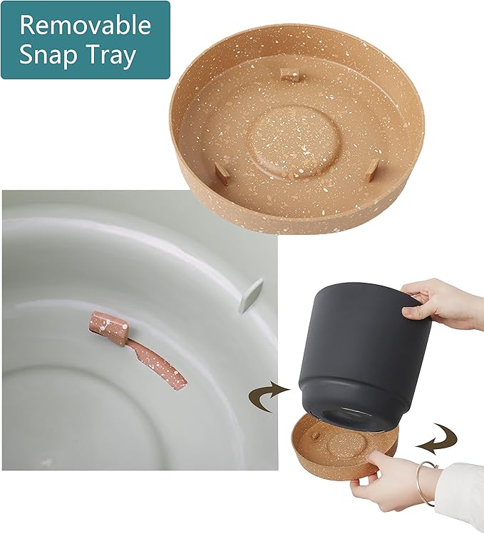 - 【MINIMALIST DESIGN】A simple modern aesthetic and clean matte finish planter pot will match any home or office decor. The light brown rounded trays contrast beautifully with the white or green plant pots for a high-end look