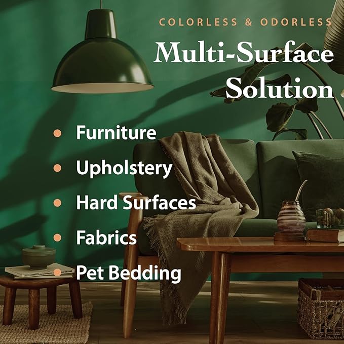 - MULTI-SURFACE SPRAY| Use our dust mite remover spray on a variety of surfaces including bedding, fabrics, furniture, upholstery, hard surfaces, and pet beds. Colorless & odorless, the solution will not stain or leave residue behind