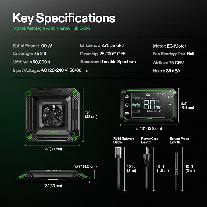 - Fully Automated: Compatible with the GrowHub Controller and App, you can program light intensity, light spectrum, on/off periods, fan speed, and airflow volume, make changes to better suit your plants at any time