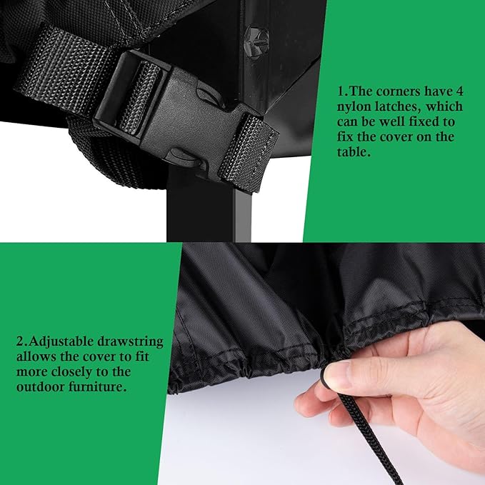 - Durable Material: The outdoor table cover uses 420D Oxford cloth, which is waterproof, fade-resistant and tear-resistant.