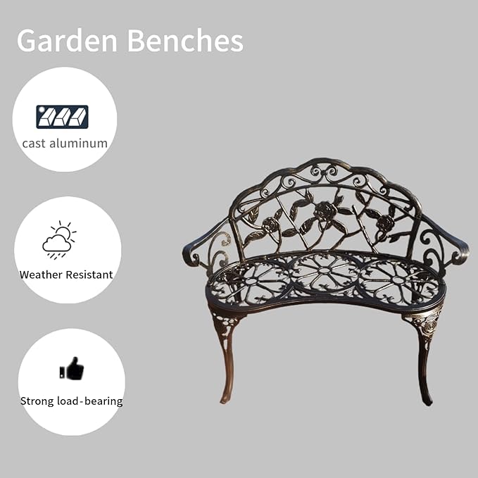 KAILI Garden Bench, Metal Aluminum Rose, Suitable for Garden Porch Park Front Porch Balcony Outdoor (Bronzed)