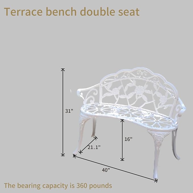 - Size: The size of the terrace bench is 40 inches wide x 13 inches deep x 31 inches high; 16 inches seat height; seat width 35 inches x 13 inches long; with a load-bearing capacity of 360 pounds, this furniture is very suitable for 2 people aldult