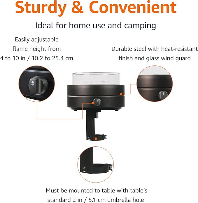 - EASY MOUNTING: Specifically designed to mount securely through minimum 2-inch umbrella holes in patio tables - perfect integrated design for outdoor dining spaces
