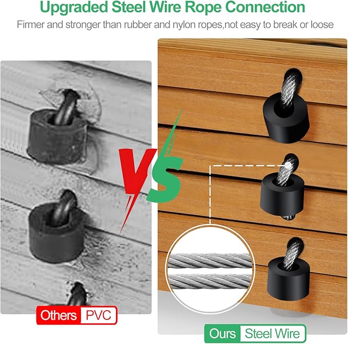 - Firm Steel Wire Rope Connection:Each plank is firmly connected with 2 rows of steel wire ropes and rubber spacers,which are more aging-resistant and anti-loosening than rubber and nylon ropes,while providing better protection to the wood surface!Whatโs more,this kind of connection gives the garden wooden pathway sufficient flexibility and durability to adapt to all kinds of uneven ground,like beach,grassy road,sandy road,icy road,snowy road,gravelly road,damp or muddy ground,boggy or bare areas